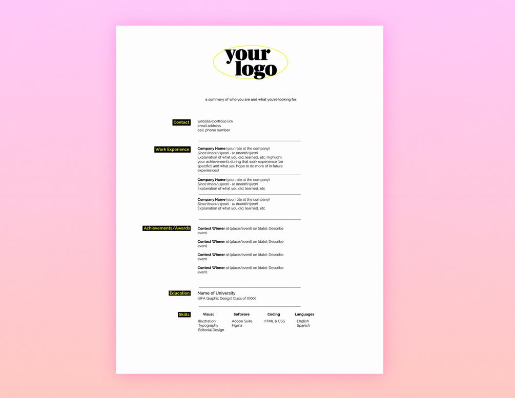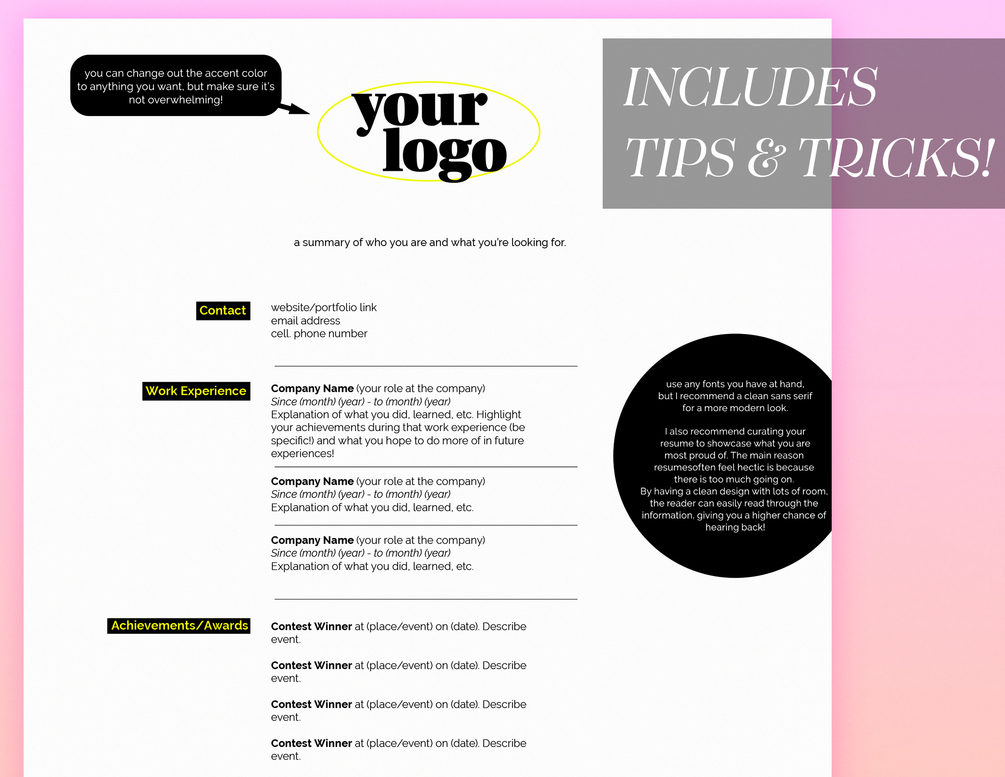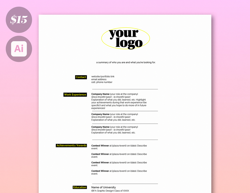 1 Customizable Adobe Illustrator file + Resume Advice